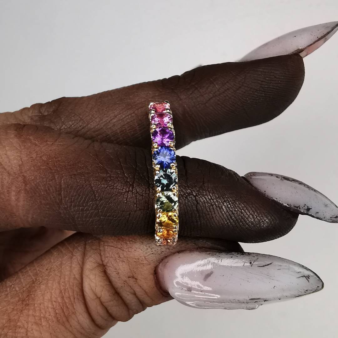 Geltono Aukso 1/2 Eternity Žiedas Su Safyrais