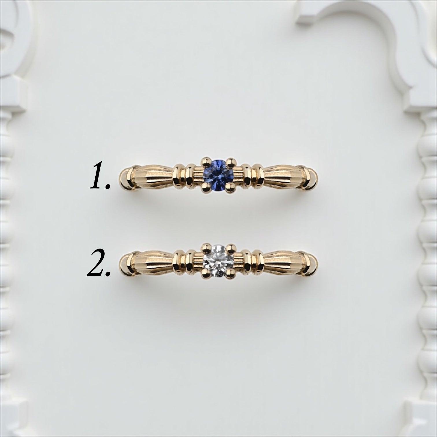 14k Geltono aukso žiedai su 3.5mm Safyru ir Deimantau