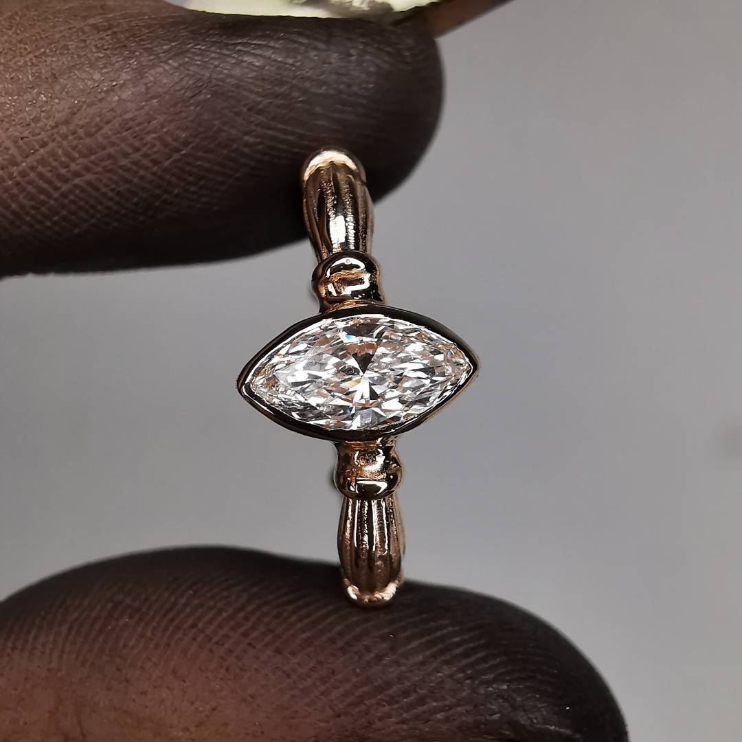 14k Raudono aukso autorinis žiedas su lab deimantu