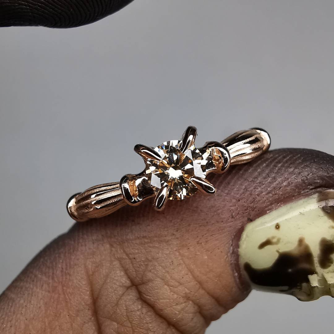 Column Raudono Aukso Žiedas Su Deimantu