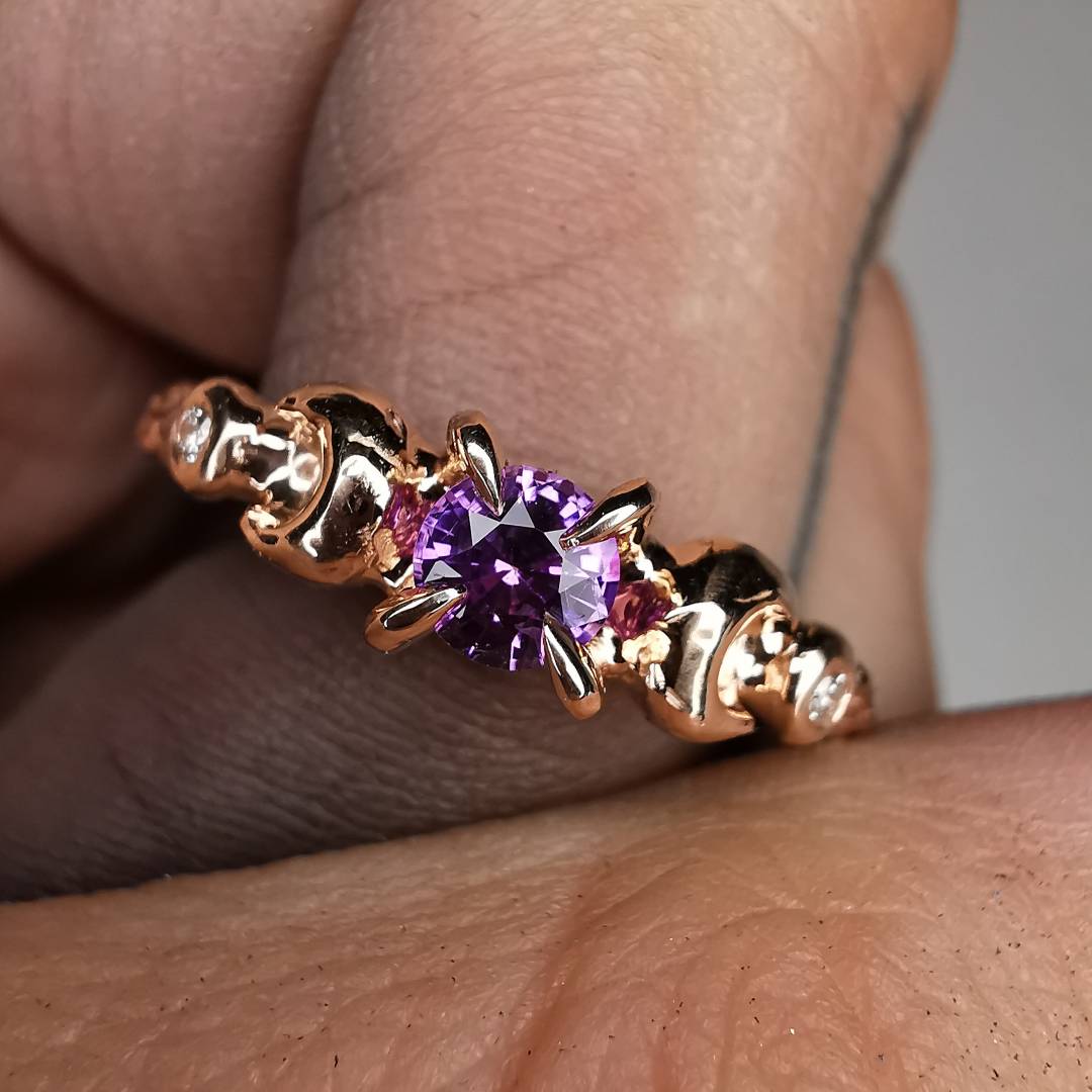 Love You To The Moon...Raudono Aukso Žiedas Su Safyru Ir Deimantais