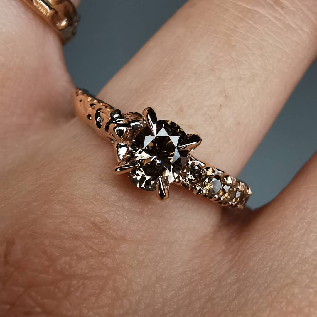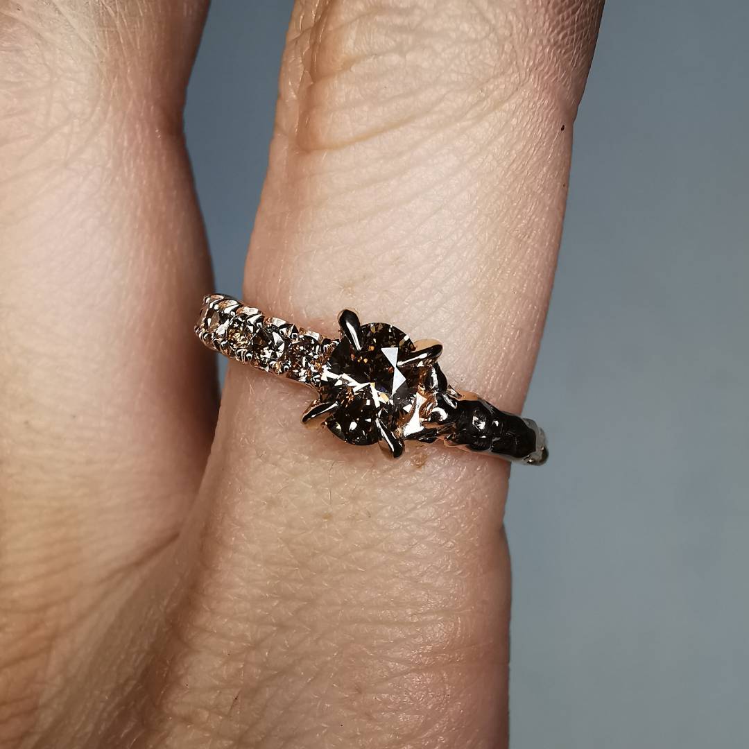14k Raudono aukso autorinis žiedas su deimantais