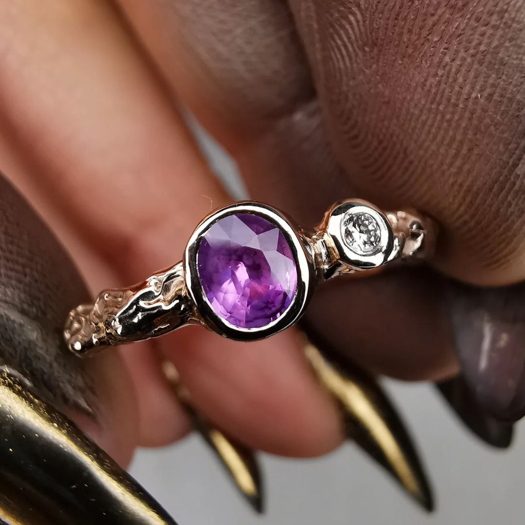 14k raudonas auksas su Safyru ir 2mm lab. Deimantu