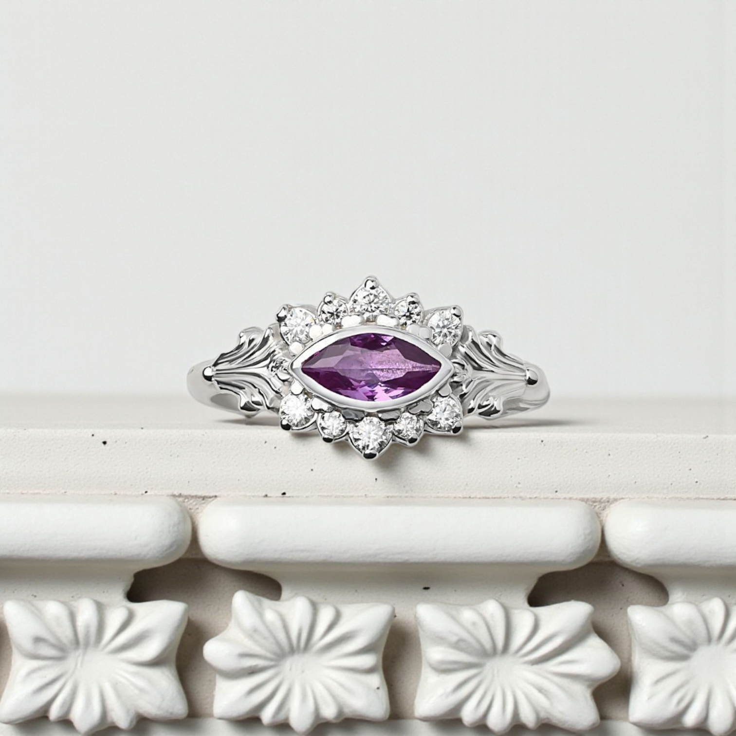Column II Akis Sidabro Žiedas Su Alexandritu & Moisanitais