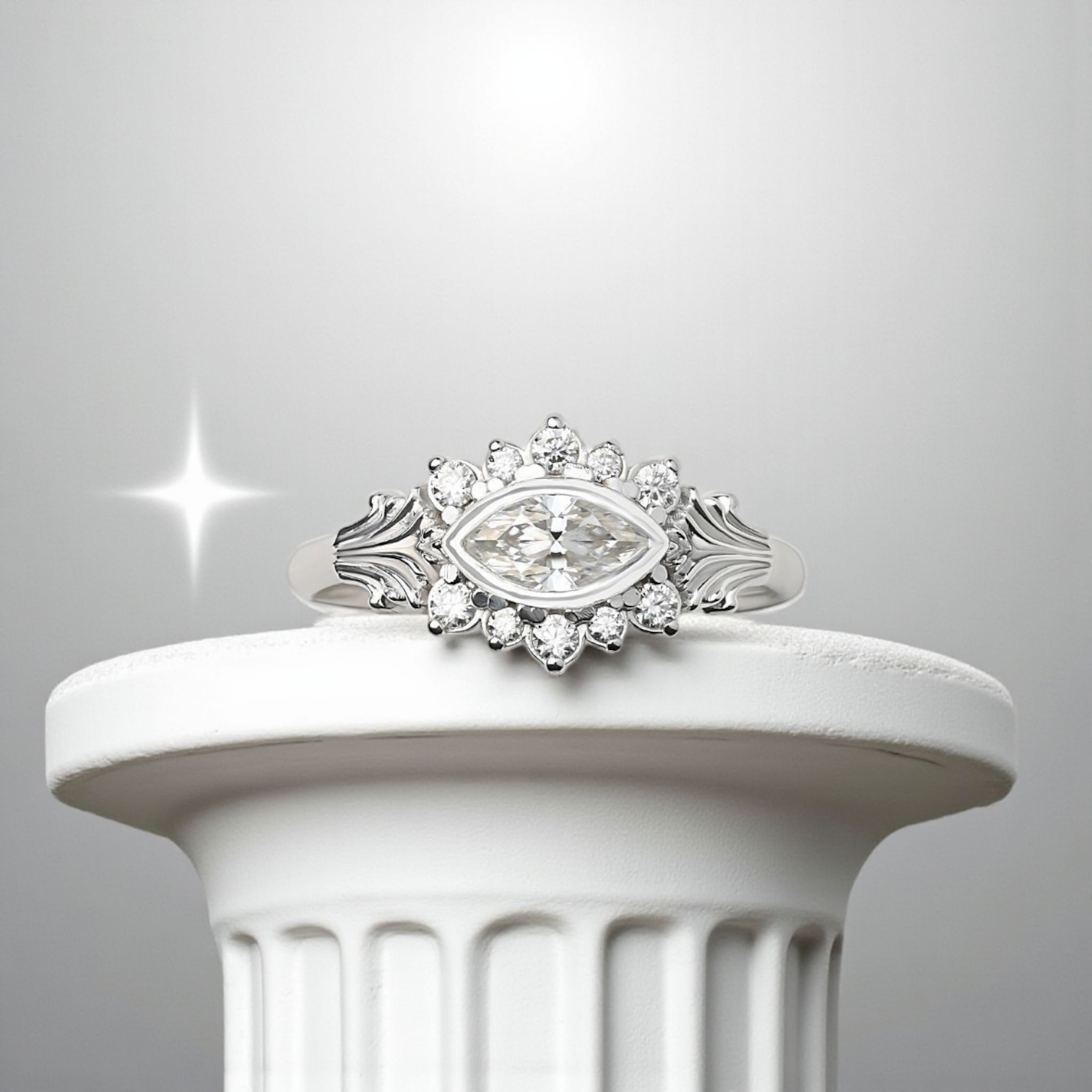 Column II Akis Sidabro Žiedas Su Moisanitais
