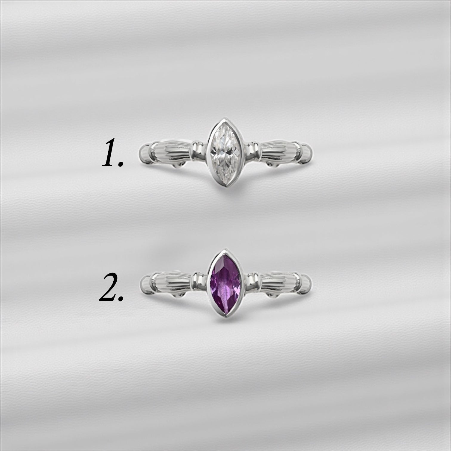 Sidabrinis Column Markizės Žiedas Su 7x4mm Moisanitu Ir Lab. Aleksanditu