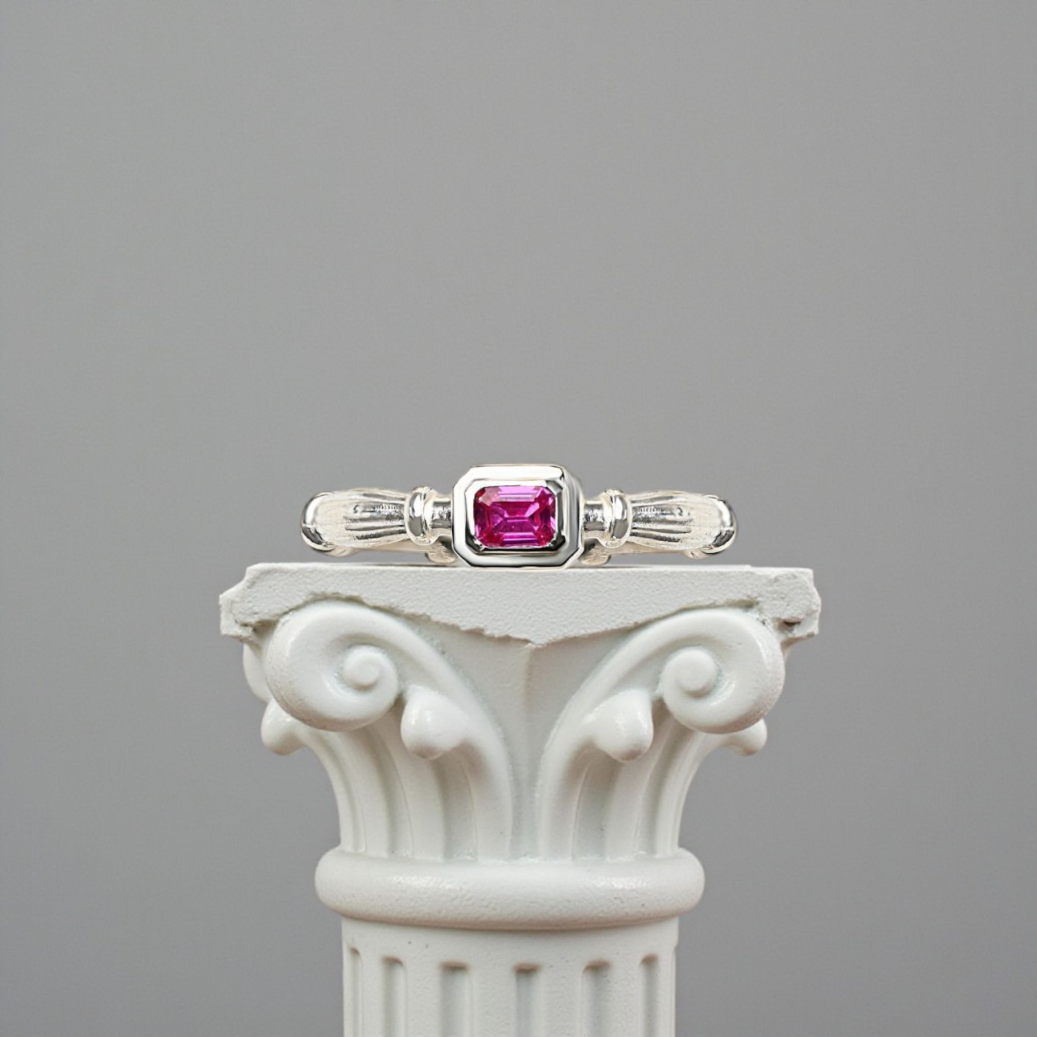 Sidabrinis Column Midi Žiedas Su 3mm Lab. Rubinu