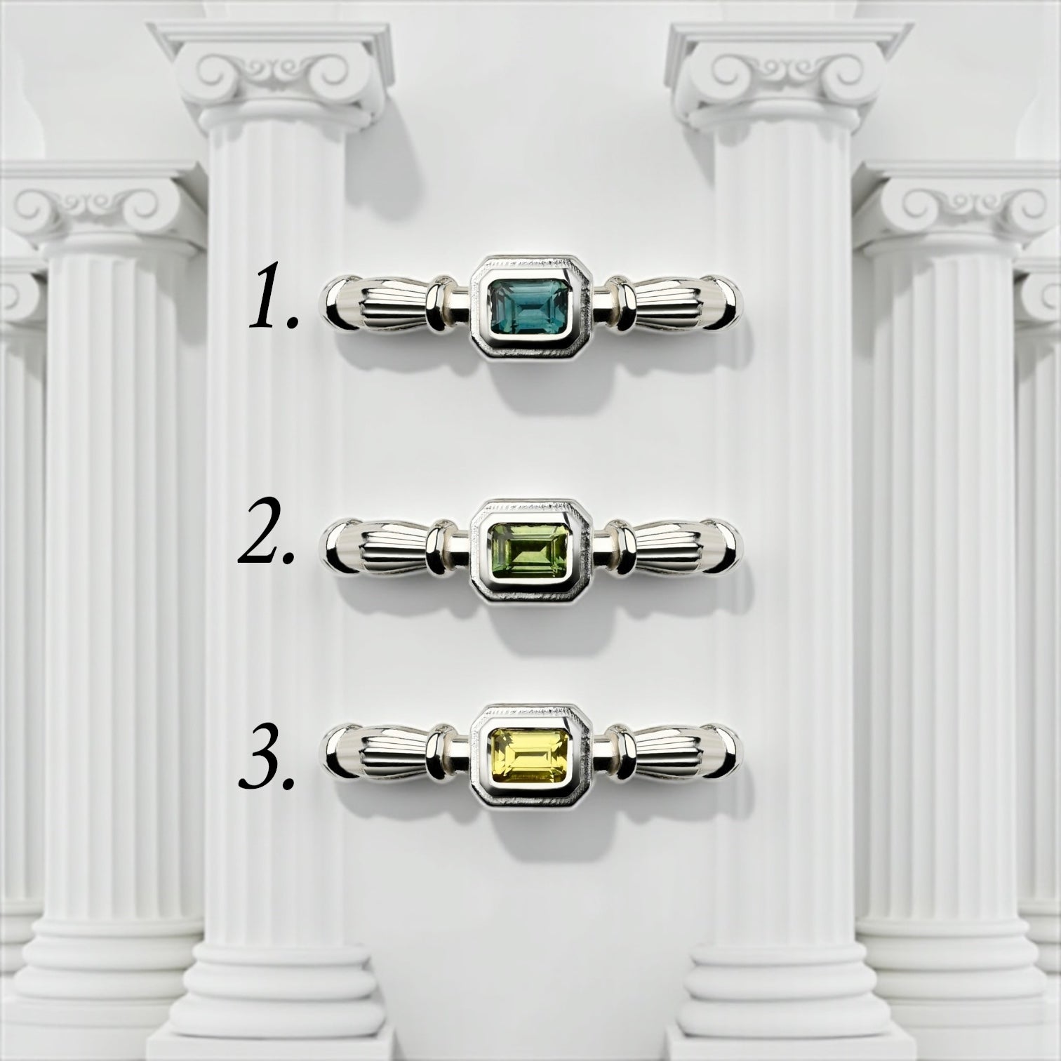 Sidabrinis Column Žiedas Su 3mm Safyru