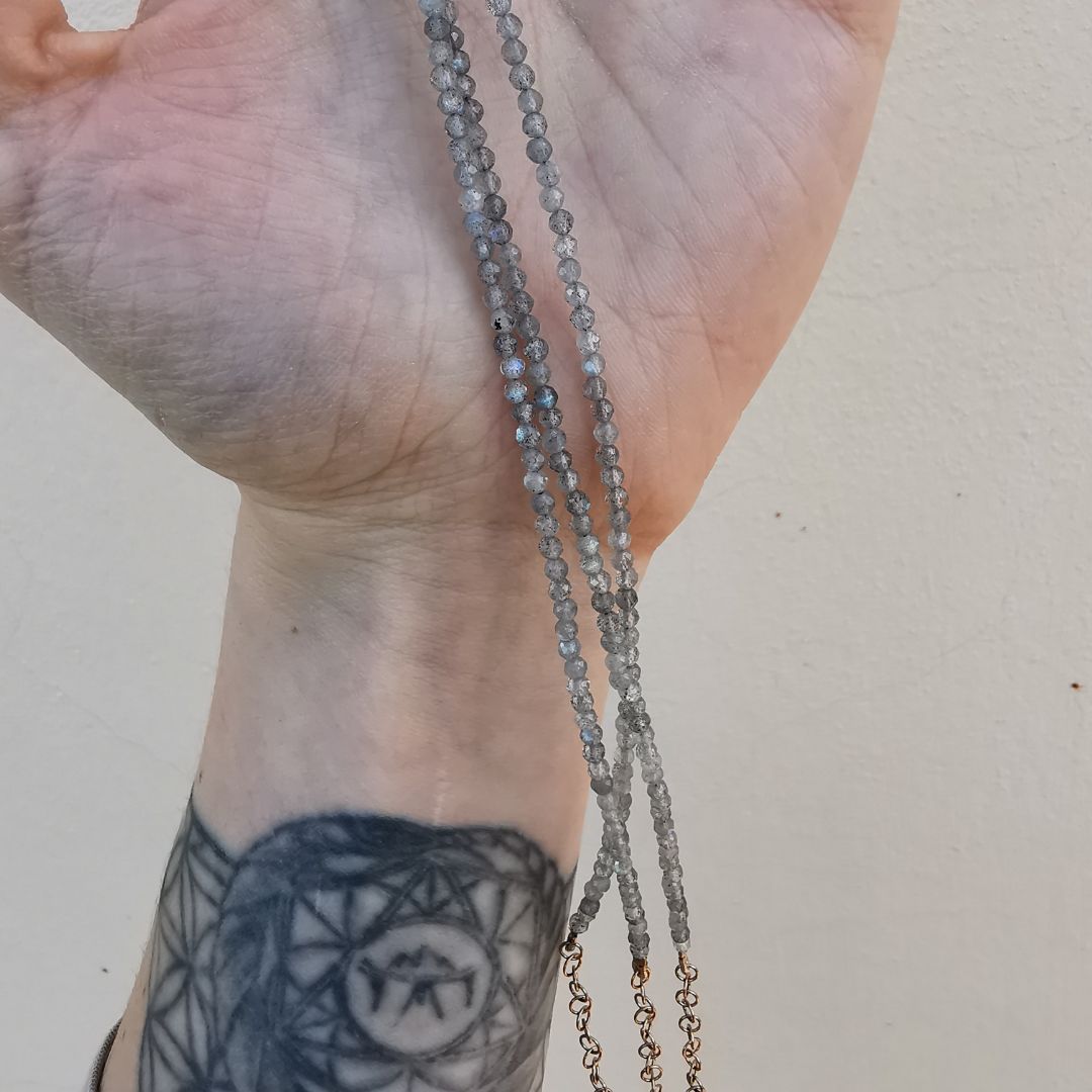 Sidabro Apyrankė Su Labradoritais Paauksuotas Raudonu Auksu