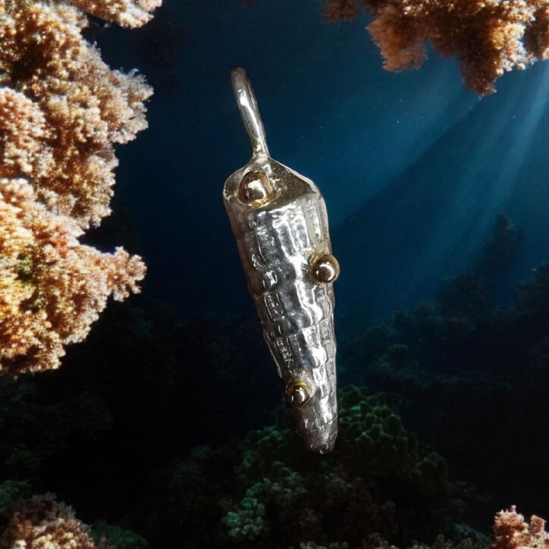 Sidabro Pakabukas Shell Su Raudono Aukso Lašais