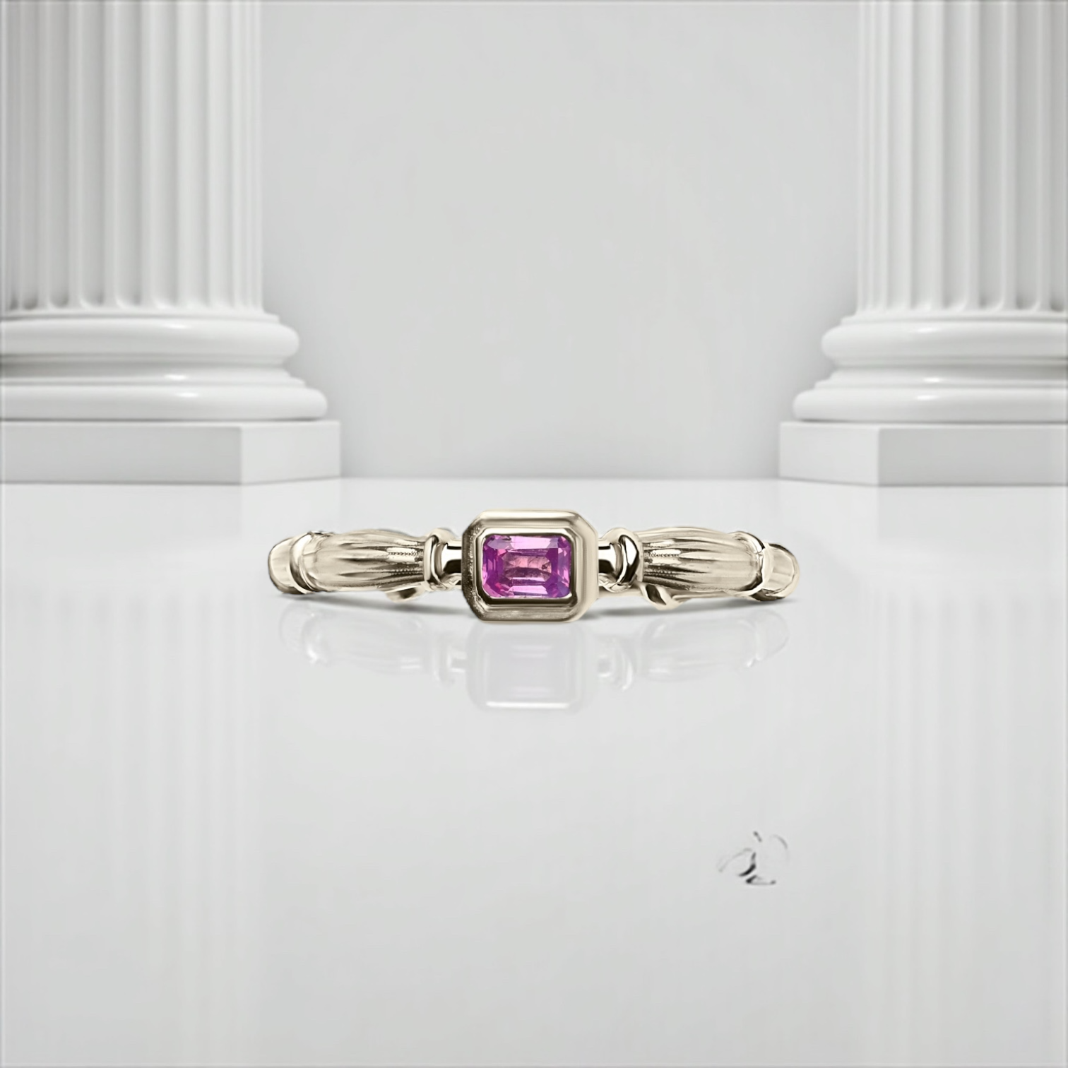 Balto Aukso Column Midi Žiedas Su 3mm Safyru