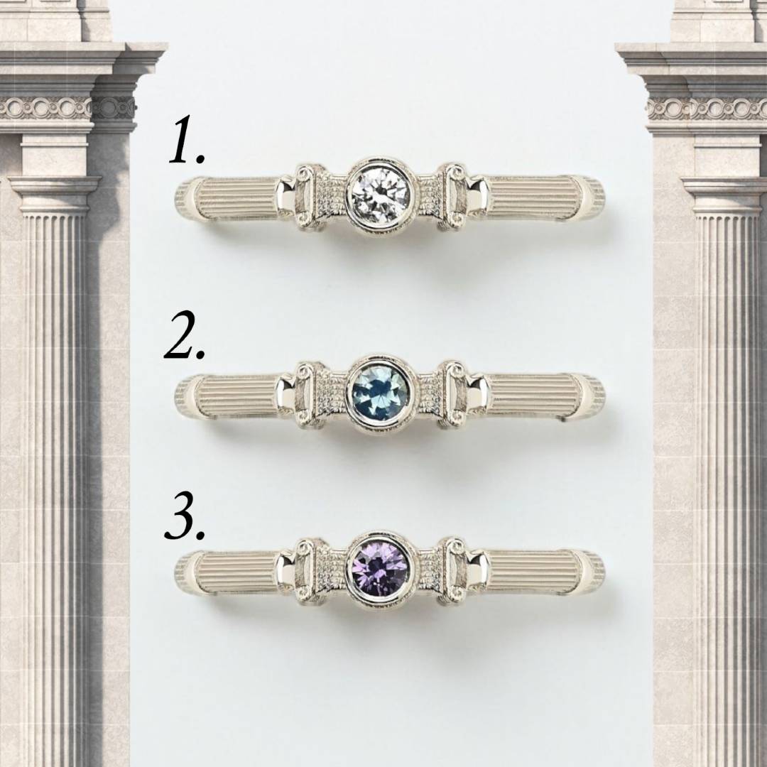Balto Aukso Column Midi Žiedas Su Deimantu ir Safyrais