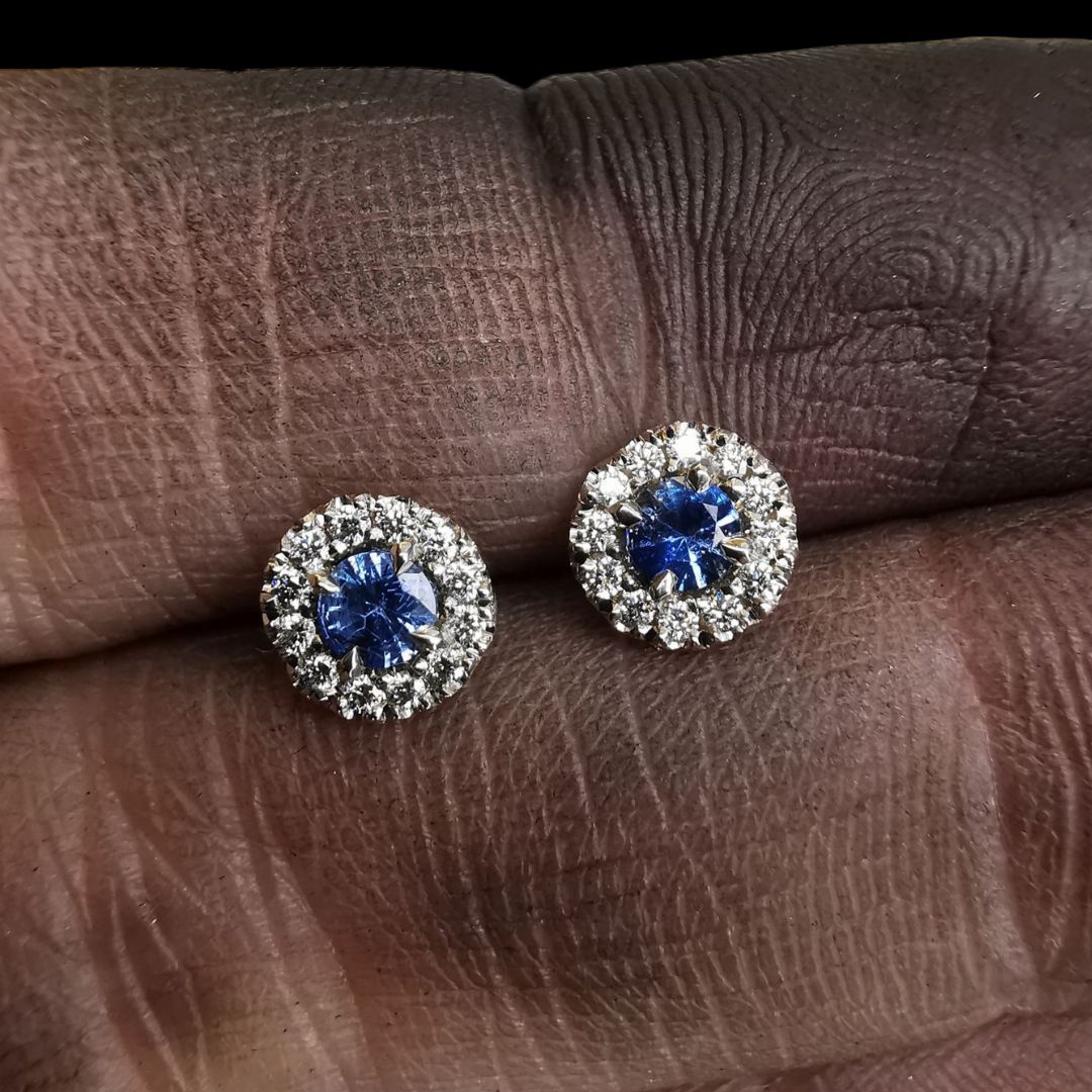 Balto Aukso Auskarai Su Safyrais Ir Deimantais