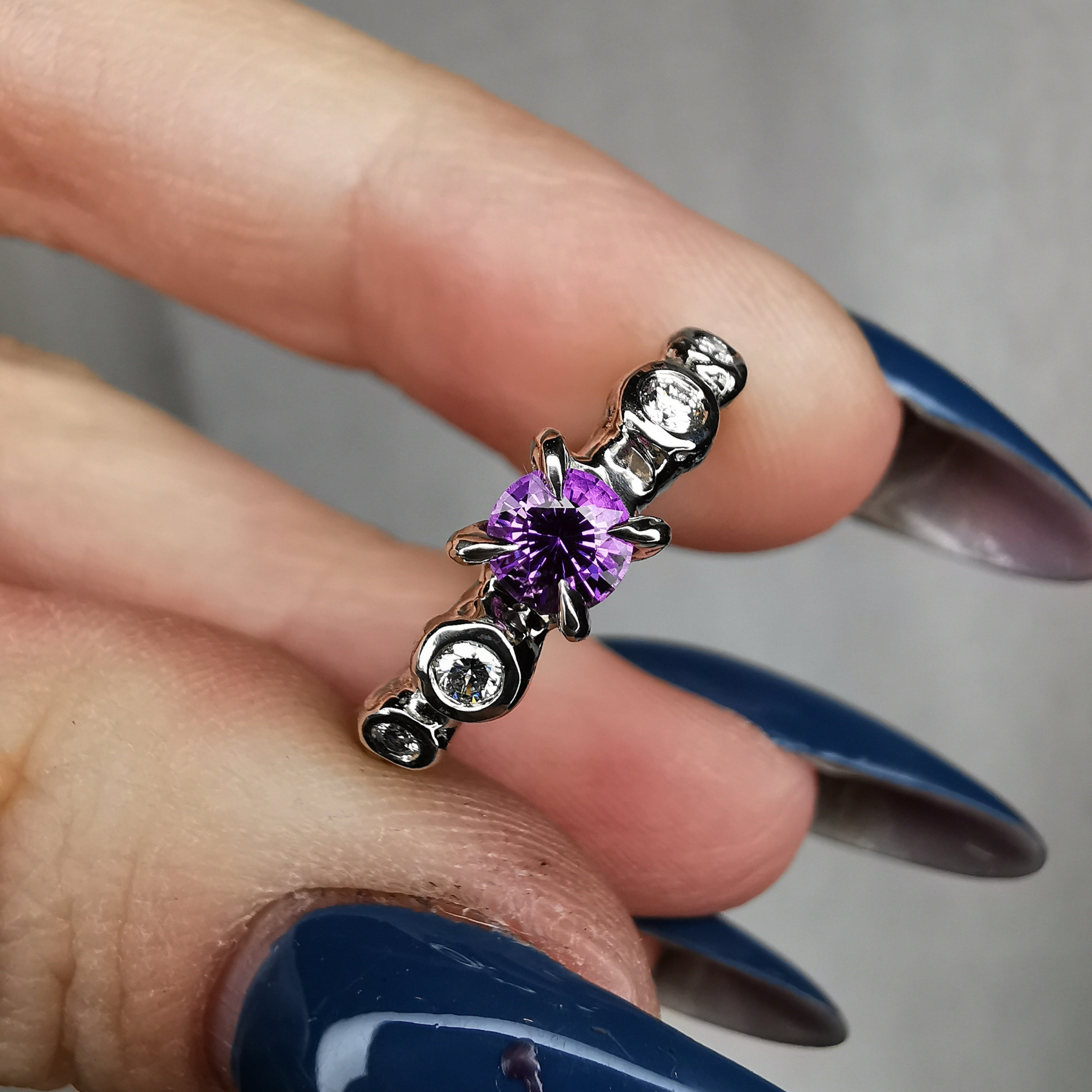 Balto Aukso Žiedas Su Violetiniu Safyru Ir Lab. Deimantais