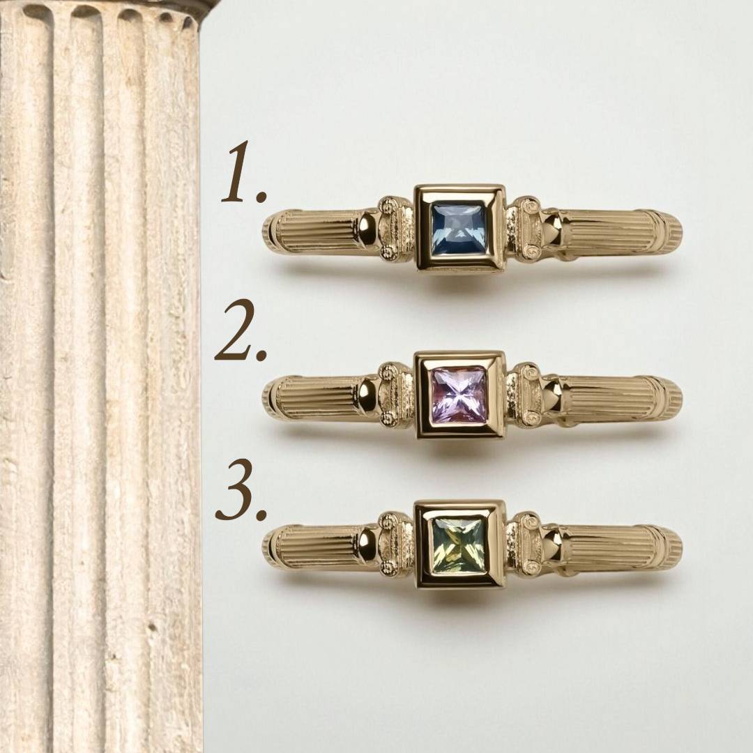 Geltono Aukso Column Princess Žiedas Su Safyrais
