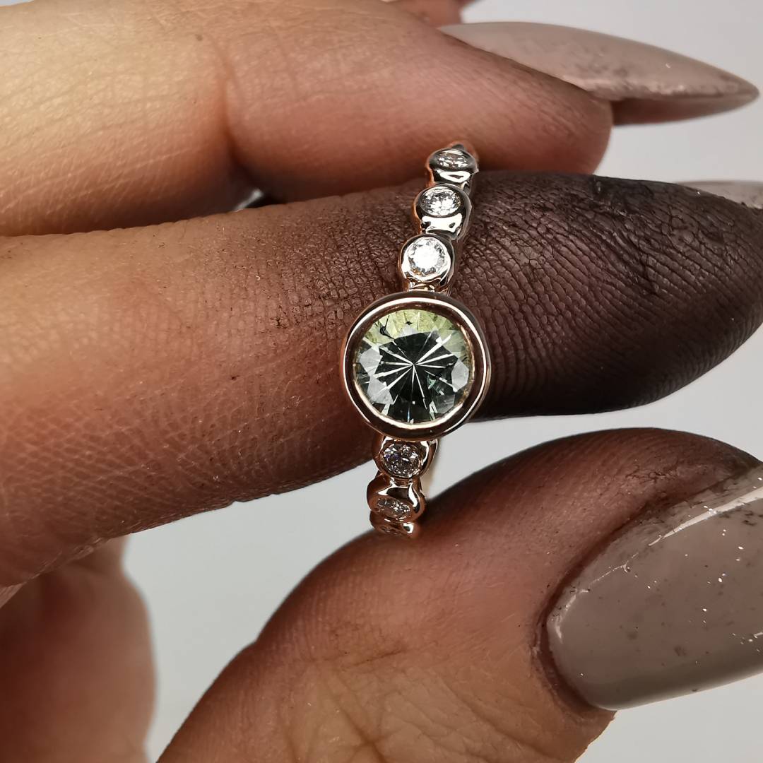14h Rose gold ring with 5mm sapphire and six natural diamonds