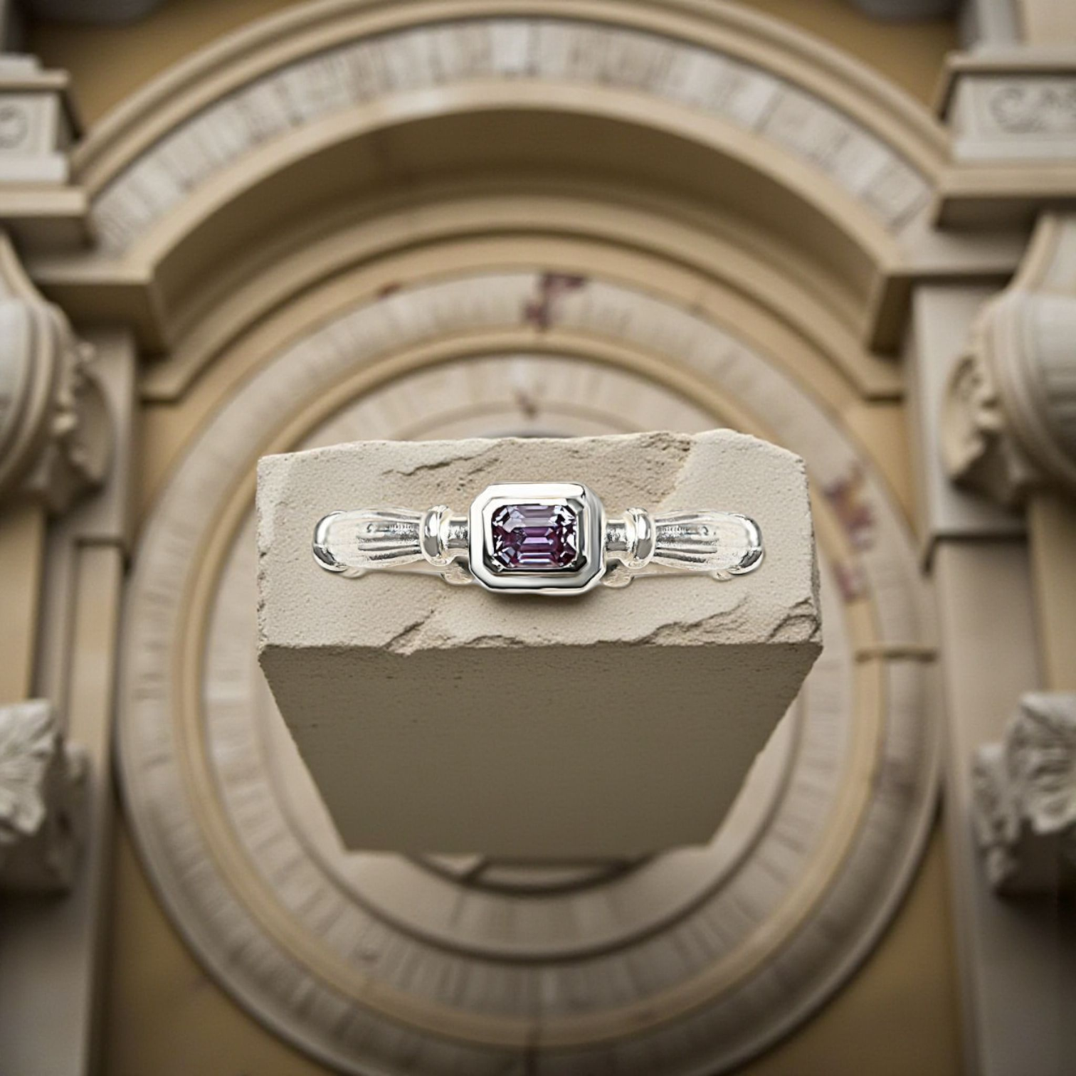 Silver Column Midi Ring With 3mm Lab. Alexandrite