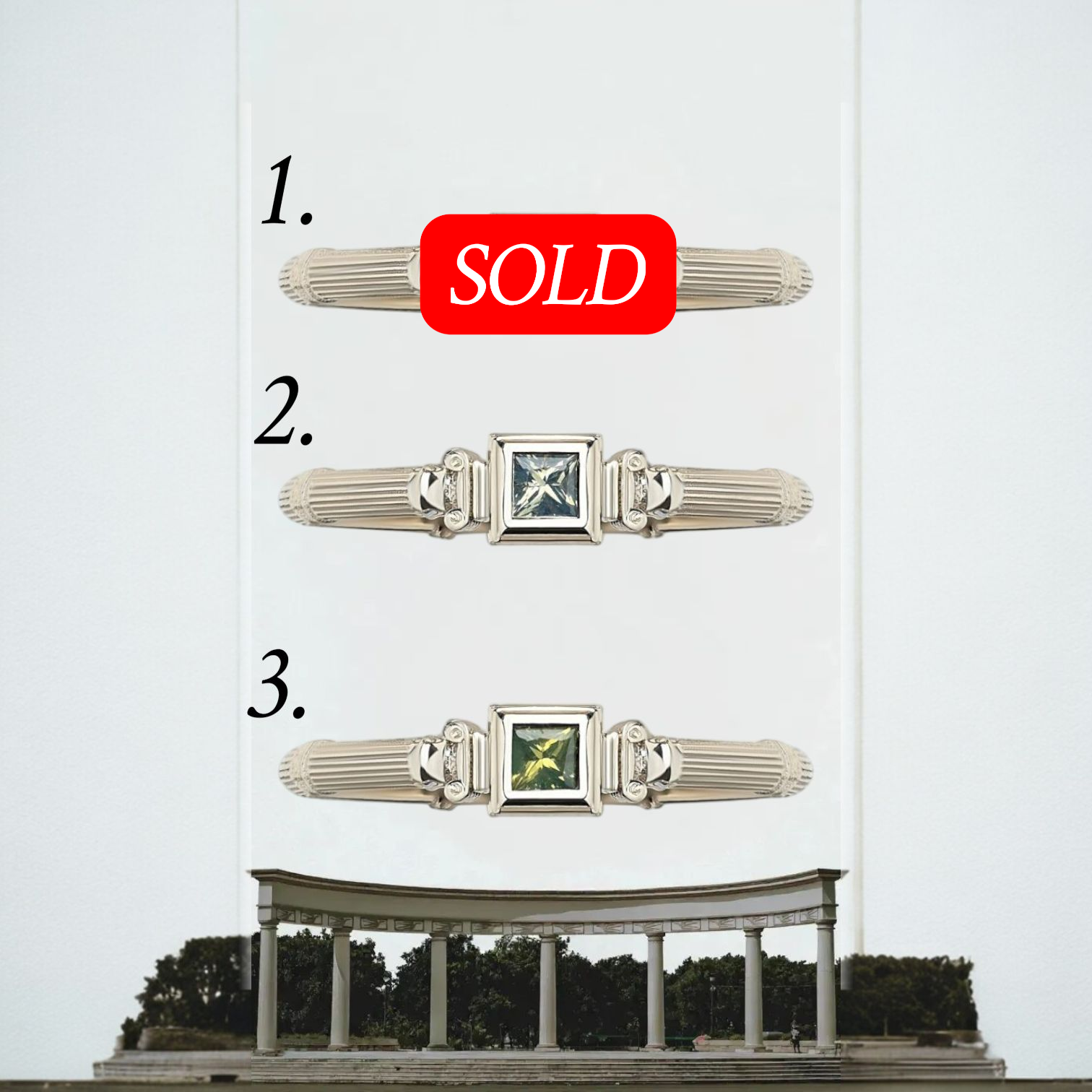 White Gold Column Princess Ring With 3mm Sapphires